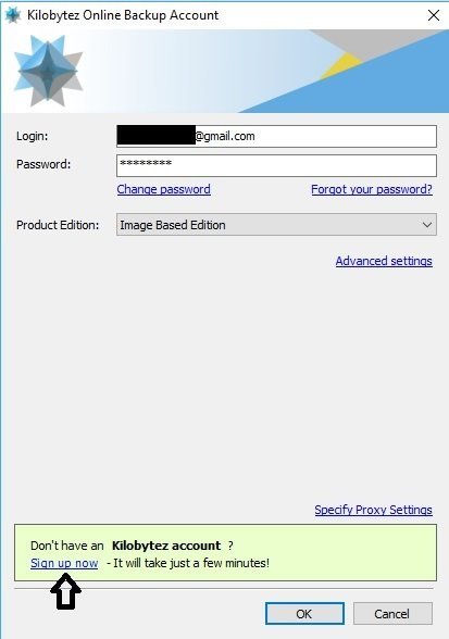 Great question. After downloading and installing the software, Launch the Kilobytez Backup Software. Click the icon Kilobytez Logo at the top left and choose "Kilobytez Online Backup Account".